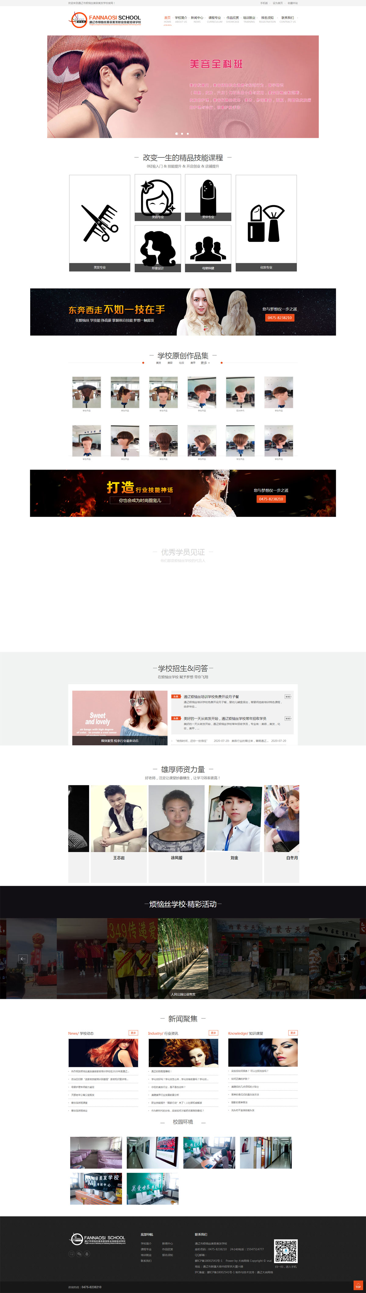 遼市煩惱絲美發(fā)美容專業(yè)學(xué)校建校于1987年,是內(nèi)蒙古勞動廳指定技術(shù)等級定點培訓(xùn)單位,通遼勞動局批準(zhǔn)并備案民政局注冊的一所具有近20年歷史的美容美發(fā)化妝攝影名校,通遼市青年就業(yè)培訓(xùn)基地。學(xué)校位于內(nèi)蒙古通遼市站前長途汽車站北門西側(cè),占地面積1200平方米,集教學(xué),研修,實習(xí),產(chǎn)品經(jīng)銷,食宿為一體的大 型培訓(xùn)實體。