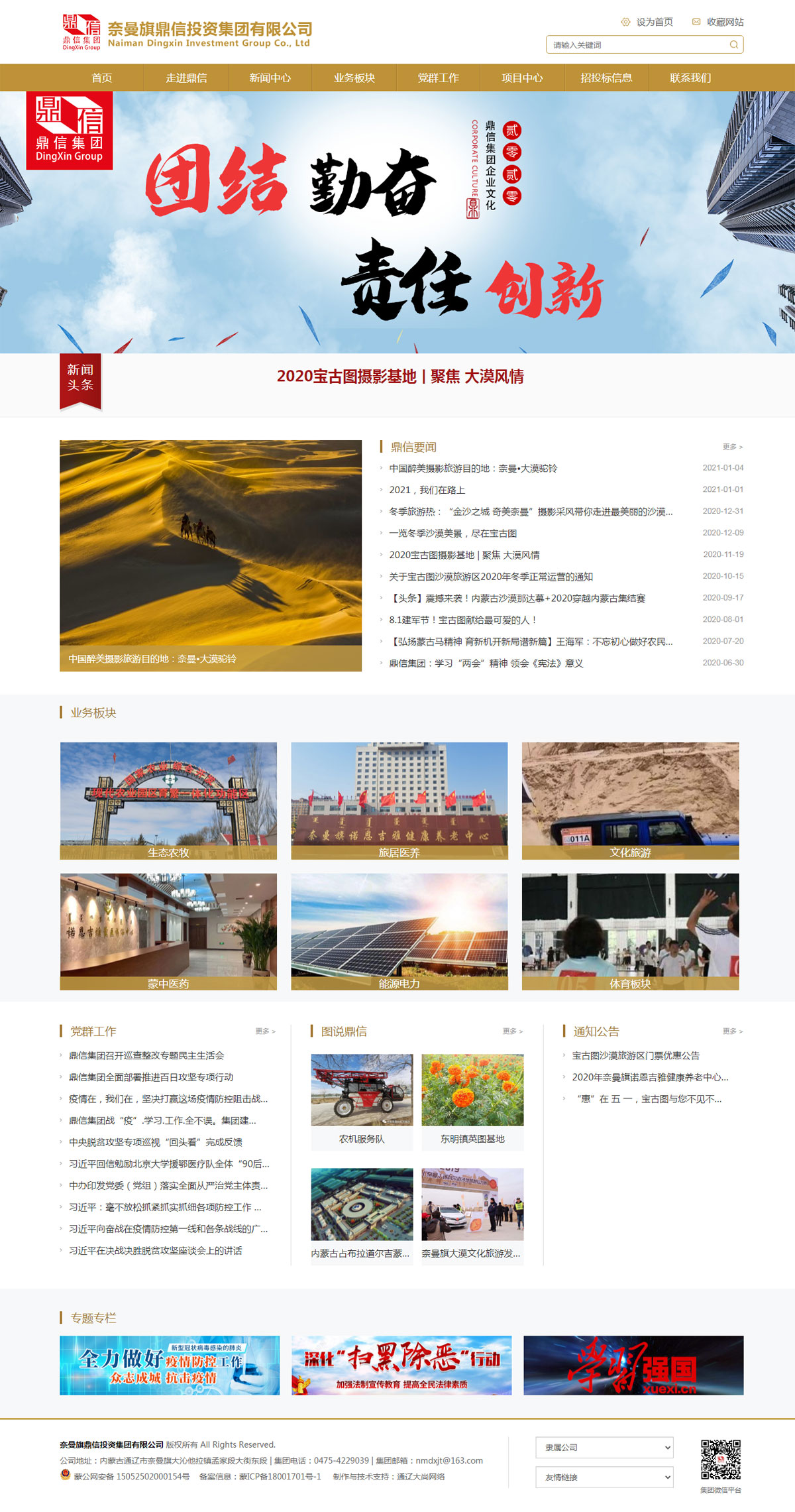 鼎信集團在旗委旗政府的堅強領導下,將以堅定實業(yè)興企的戰(zhàn)略,以抓實重大工程建設項目為主要任務,以推進鼎信集團轉型升級為主抓方向,以深化企業(yè)內(nèi)部改革為重要抓手,以強化企業(yè)黨建和文化建設為根本保障,以建設、經(jīng)營、服務社會為職能,以戰(zhàn)略轉型和管理提升為主線,整合各領域的上下游資源,推動關聯(lián)產(chǎn)業(yè)“三位一體”融合發(fā)展,將現(xiàn)代農(nóng)業(yè)、沙漠旅游、旅居康養(yǎng)等產(chǎn)業(yè)深度融合。同時,抓住蒙中藥材、光伏發(fā)電、大數(shù)據(jù)等現(xiàn)代新興產(chǎn)業(yè)發(fā)展契機,走穩(wěn)健經(jīng)營、多元發(fā)展之路,實現(xiàn)經(jīng)濟效益、生態(tài)效益、社會效益多贏。